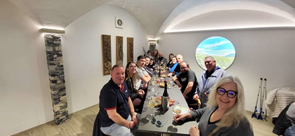 Après cette matinée, rendez-vous est donné aux bains de Saillon pour un moment de détente en milieu d’après-midi. Ont rejoint l’équipe : Nathalie, Txema, Adriana et Mila, Lionel et Sandrine, Corentin et Gaelle (du BC Perly-Certoux). Après avoir bullé une heure et demie, direction l’œnothèque de Leytron pour une dégustation de vins de la région et quelques planchettes, offertes par le Président, Yoyo !